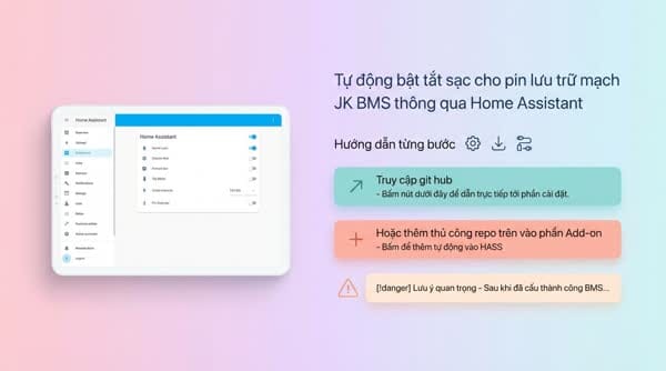 For those using smart homes who already have a Home Assistant system in place, I’ve figured out a way to connect this system to the battery’s BMS and have been running it for 2 months now. The steps are as follows.